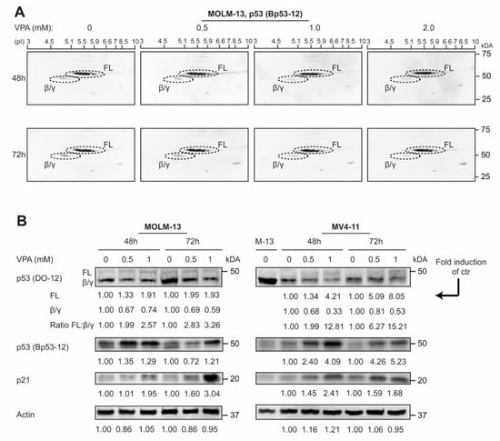 3.3. p53 Protein Isoforms Are Modulated by Valproic Acid in AML Cell Lines