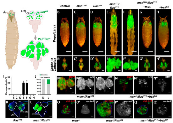 2.2. msn−/− Collaborates with RasV12 to Activate JNK Signaling
