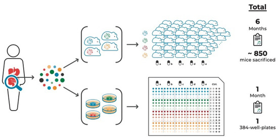 An additional advantage of PDO cultures is that they can be used in high-throughput drug screens. Such screens can be composed of multiple samples from the same tumor, thereby taking ITH into account [41,94]. Figure 1 compares this approach with a PDX approach aiming to test the same number of tumor samples and compounds to illustrate the time- and cost-effectiveness of the organoid system.