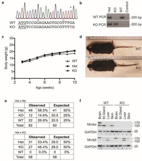3.2. MRCKα Ko Mice Do Not Show an Obvious Phenotype