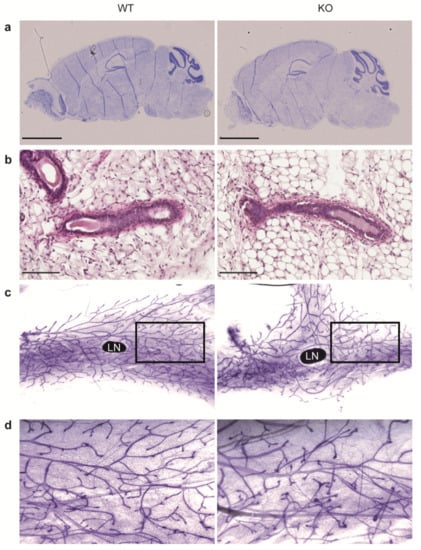 For mammary gland branching analysis, 4th inguinal mammary fat pads were prepared as whole mount samples and carmine alum staining was performed according to the protocol as previously described [16]. For the analysis of brain sections, sagittal brain sections at 5 μm thickness were stained in 0.5% cresyl violet solution containing 3% glacial acetic acid, according to standard procedures for Nissl staining.