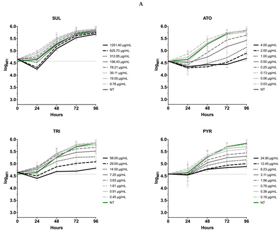 - Molefe, N.I.; Yamasaki, S.; Macalanda, A.M.C.; Suganuma, K.; Watanabe, K.; Xuan, X.; Inoue, N. Oral administration of azithromycin ameliorates trypanosomosis in Trypanosoma congolense-infected mice. Parasitol. Res. 2017, 116, 2407–2415. [Google Scholar] [CrossRef] [PubMed]