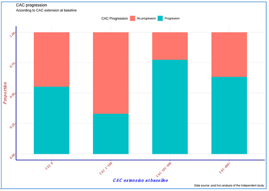 Coronary artery calcification (CAC) progression according to baseline CAC stratification.