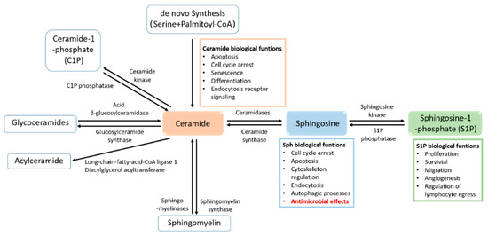 - Hannun, Y.A.; Obeid, L.M. Sphingolipids and their metabolism in physiology and disease. Nat. Rev. Mol. Cell Biol. 2018, 19, 175–191. [Google Scholar] [CrossRef]