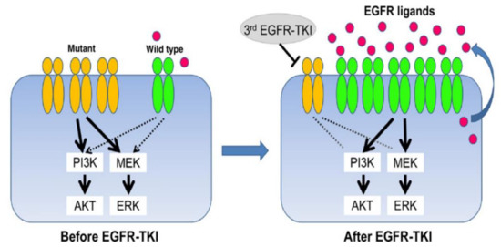 - Amplification of EGFR wild-type alleles conferring resistance to osimertinib [21], schematically depicted in Figure 1.