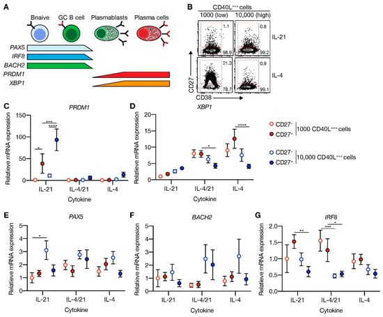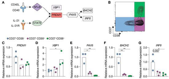- Ding, B.B.; Bi, E.; Chen, H.; Yu, J.J.; Ye, B.H. IL-21 and CD40L synergistically promote plasma cell differentiation through upregulation of Blimp-1 in human B cells. J. Immunol. 2013, 190, 1827–1836. [Google Scholar] [CrossRef] [PubMed]