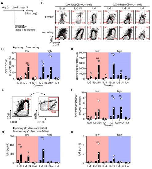 3.4. Secondary Cultures Including CD40L/IL-21 Drive Optimal ASC Differentiation
