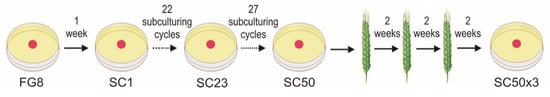SC50×3 subcultures were obtained from sterile PDA plates inoculated with mycelium derived from three head-to-head passages, as described in Section 2.2.2.