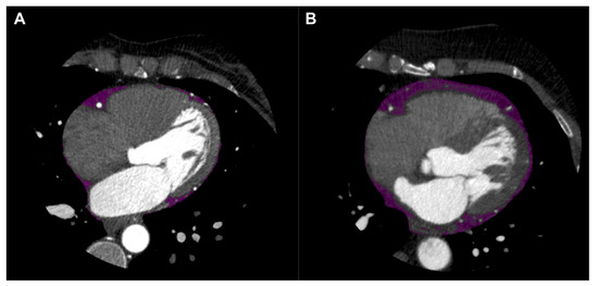 - Goeller, M.; Achenbach, S.; Marwan, M.; Doris, M.K.; Cadet, S.; Commandeur, F.; Chen, X.; Slomka, P.J.; Gransar, H.; Cao, J.J.; et al. Epicardial adipose tissue density and volume are related to subclinical atherosclerosis, inflammation and major adverse cardiac events in asymptomatic subjects. J. Cardiovasc. Comput. Tomogr. 2018, 12, 67–73. [Google Scholar] [CrossRef]