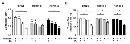 3.1. Renin-b Overexpression Attenuates Loss of Viability under OGD