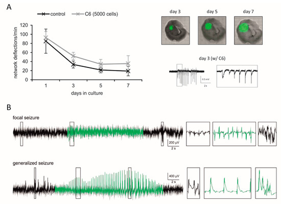 - Köhling, R.; Senner, V.; Paulus, W.; Speckmann, E.J. Epileptiform activity preferentially arises outside tumor invasion zone in glioma xenotransplants. Neurobiol. Dis. 2006, 22, 64–75. [Google Scholar] [CrossRef] [PubMed]