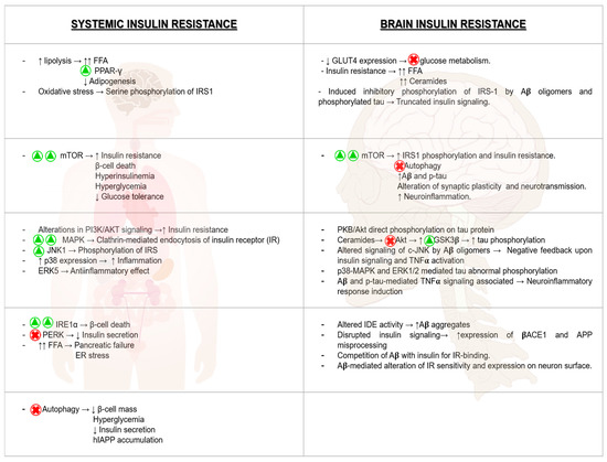Although both complexes of mTOR are involved in the pathogenesis of diabetes through their actions in β-cell metabolism and immune cells [171], the role of mTORC1 in insulin resistance and in the progression of T2D will be explained in more detail for a better understanding of type 3 diabetes (T3D).