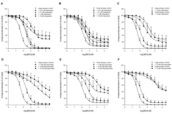 3.1. Effect of Indacaterol and Glycopyrrolate on Methacholine-Induced Constrictions of Large and Small Airways in Guinea Pig Lung Slices