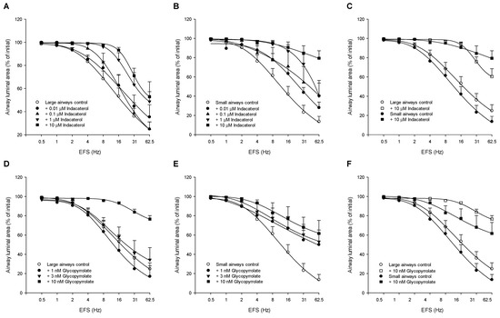 3.2. Effect of Indacaterol and Glycopyrrolate on EFS-Induced Constrictions of Large and Small Airways in Guinea Pig Lung Slices