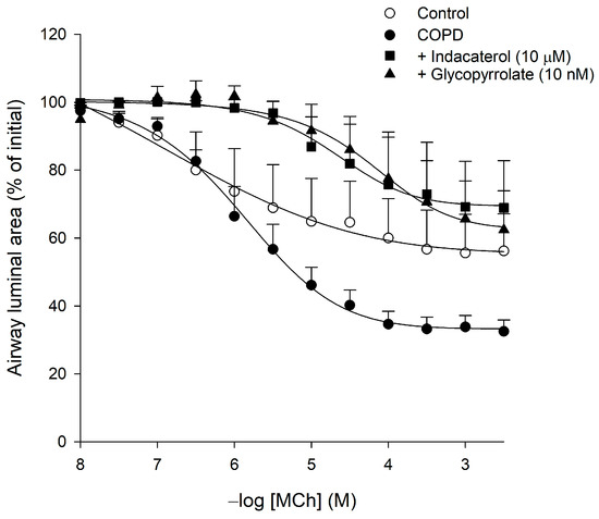 3.3. Effect of Indacaterol and Glycopyrrolate on Methacholine-Induced Constrictions Lung Slices Obtained from COPD Patients
