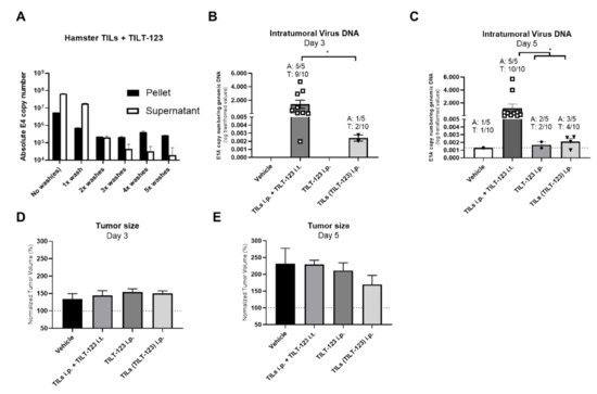 - Siurala, M.; Vähä-Koskela, M.; Havunen, R.; Tähtinen, S.; Bramante, S.; Parviainen, S.; Mathis, J.M.; Kanerva, A.; Hemminki, A. Syngeneic syrian hamster tumors feature tumor-infiltrating lymphocytes allowing adoptive cell therapy enhanced by oncolytic adenovirus in a replication permissive setting. Oncoimmunology 2016, 5, e1136046. [Google Scholar] [CrossRef]
