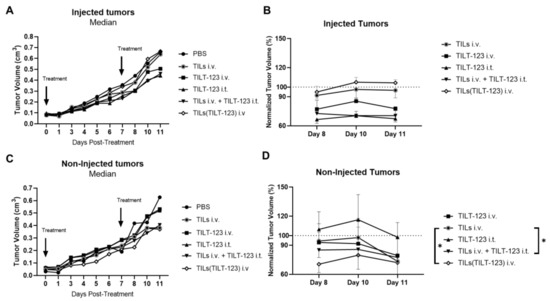 3.4. Anti-Tumor Efficacy of TILs Loaded with TILT-123