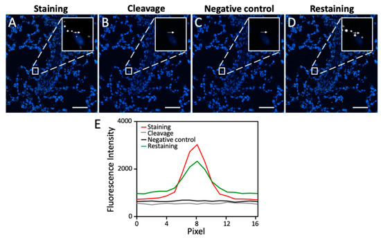 - Liao, R.; Pham, T.; Mastroeni, D.; Coleman, P.D.; Labaer, J.; Guo, J. Highly Sensitive and Multiplexed In-Situ Protein Profiling with Cleavable Fluorescent Streptavidin. Cells 2020, 9, 852. [Google Scholar] [CrossRef] [PubMed]