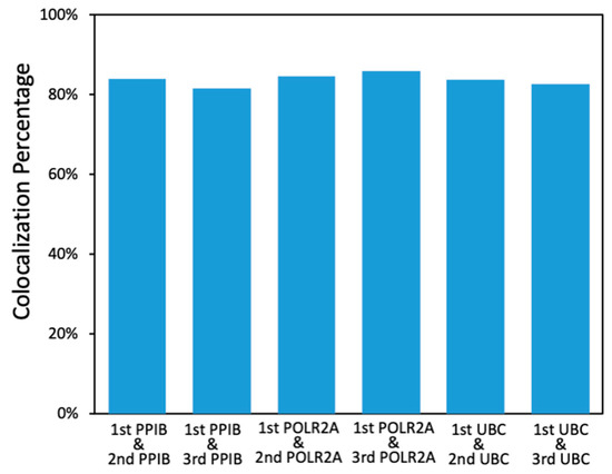 Percentage of the PPIB, POLR2A, and UBC spots identified in the first cycle that reappeared in the following cycles.
