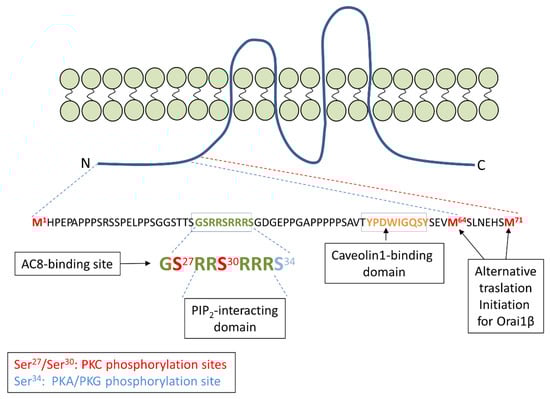 - Fukushima, M.; Tomita, T.; Janoshazi, A.; Putney, J.W. Alternative translation initiation gives rise to two isoforms of Orai1 with distinct plasma membrane mobilities. J. Cell Sci. 2012, 125, 4354–4361. [Google Scholar] [CrossRef]