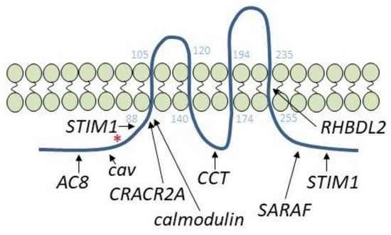 - Muik, M.; Fahrner, M.; Derler, I.; Schindl, R.; Bergsmann, J.; Frischauf, I.; Groschner, K.; Romanin, C. A Cytosolic Homomerization and a Modulatory Domain within STIM1 C Terminus Determine Coupling to ORAI1 Channels. J. Biol. Chem. 2009, 284, 8421–8426. [Google Scholar] [CrossRef]