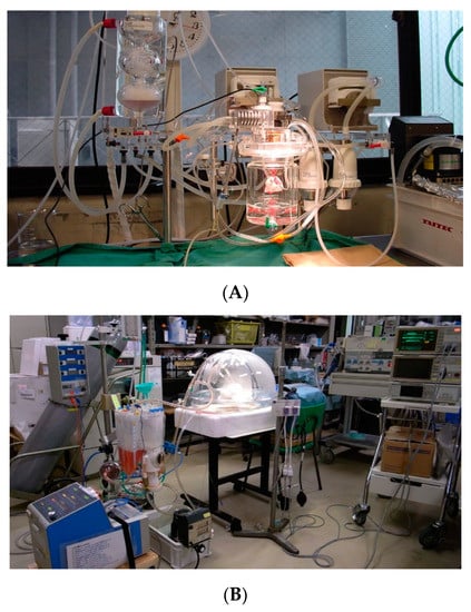 - Hoechter, D.J.; Shen, Y.-M.; Kammerer, T.; Günther, S.; Weig, T.; Schramm, R.; Hagl, C.; Born, F.; Meiser, B.; Preissler, G.; et al. Extracorporeal Circulation During Lung Transplantation Procedures: A Meta-Analysis. ASAIO J. 2017, 63, 551–561. [Google Scholar] [CrossRef] [PubMed]