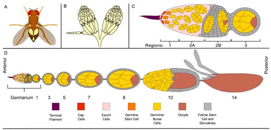 - Margolis, J.; Spradling, A. Identification and behavior of epithelial stem cells in the Drosophila ovary. Development 1995, 121, 3797–3807. [Google Scholar] [CrossRef] [PubMed]