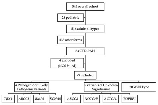 This study aimed to screen for genetic defects in a cohort of patients with CTD-PAH.