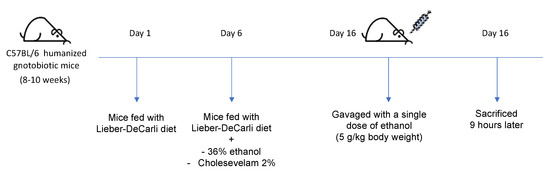 The aim of this study was to identify the potential therapeutic role of the bile acid sequestrant colesevelam in a humanized mouse model of ethanol-induced liver disease (NIAAA model) [23,24].