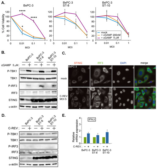 3.2. C-REV Susceptible BxPC-3 Cell Line Has a Functional STING Pathway