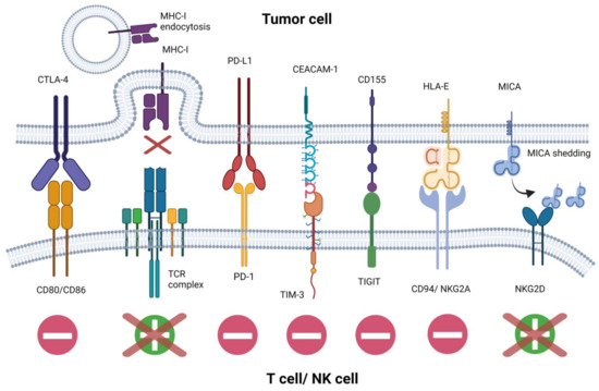 NK cell cytotoxicity might be elicited in two distinct mechanisms—direct, which relies on the balance between stimulatory and inhibitory signals obtained from encountered cells [160], and indirect, which requires prior target cells opsonization with antibodies (ADCC). In this mechanism, NK cells recognize an Fc antibody fragment through the CD16 receptor (FcγRIIIa) and consequently release cytolytic granules and cytokines, leading to cancer cell death. In both mechanisms, immunological synapse formation facilitates the trafficking of secreted granzymes and perforin into a target cell or death receptor stimulation (e.g., FAS, TRAIL) leading to target cell apoptosis [159]. However, unfortunately, the function of NK cells frequently becomes compromised by the tumor immune escape mechanisms (reviewed in [161,162]).