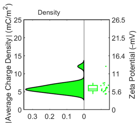 Left: distribution of average charge density of each MP obtained from fluorescence method. Right: boxplot of zeta potential converted from average charge density of MPs.