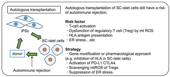 Autologous transplantation of SC-islet in T1D. Even the autologous transplantation of SC-islet has the potential for rejection. Thus, there is a need to further understand the pathophysiology of the immune response in T1D. Furthermore, strategies for avoiding the immune response are required.