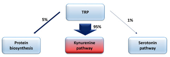 | Tryptophan (TRP) | - Possesses redox properties - Reacts readily with hydroxyl radical and singlet oxygen to form multiple oxidation products - Induces intracellular oxidized form of NAD (NAD+) synthesis | - Induces oxidative stress, an imbalance between free radical content and the capacity of the scavenging systems, in the cerebral cortex of the rats | [83,84,85,86,87,88,89] |