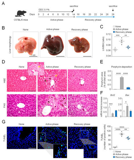 3.1. Evaluation of DDC Diet-Induced Liver Injury
