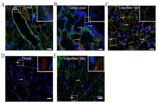 3.7. ARL13B+ Inclusions Are Present in the Thyroid and Islets of Langerhans