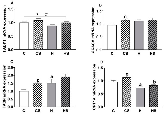 | Triglycerides (µg/mg) | 31.1 ± 2.3 | 20.7 ± 1.4 c | 44.7 ± 6.3 a | 23.7 ± 1.3 d |