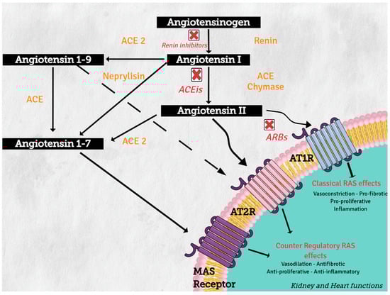 - Lavoie, J.L.; Sigmund, C.D. Minireview: Overview of the renin-angiotensin system--an endocrine and paracrine system. Endocrinology 2003, 144, 2179–2183. [Google Scholar] [CrossRef] [PubMed]