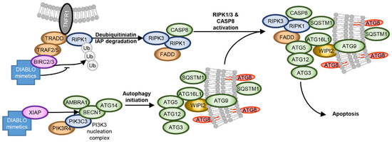 - Goodall, M.L.; Cramer, S.D.; Thorburn, A. Autophagy complexes cell death by necroptosis. Oncotarget 2016, 7, 50818–50819. [Google Scholar] [CrossRef]
