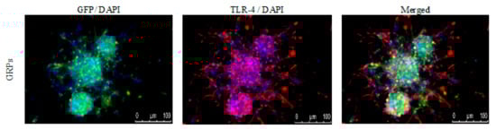 The immunological characteristics of the mouse GRPs were thoroughly described in our previous study [18]; however, to better understand prospective cellular interactions, expression of TLR-4 (toll-like receptor-4) was repeatedly performed. It appeared that murine GRPs display TLR4 markers on their cell surface (Figure 2), which in certain situations, when stimulated, may lead to activation of immune response to PAMPs and/or DAMPs and intensification of expression of co-stimulatory molecules.