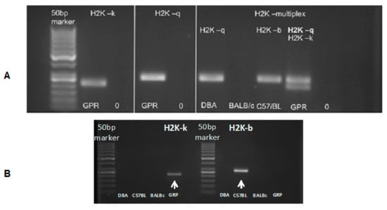 - Hofer, M.J.; Finger, C.; Pagenstecher, A. Molecular genotyping of the murine H-2K MHC class I allele. J. Immunol. Methods 2005, 302, 168–171. [Google Scholar] [CrossRef]