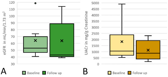 In brief, the two young patients with hereditary FSGS showed a good to very good response in respect to lowering albuminuria. However, the development of eGFR varied from +30 mL/min/1.73 m