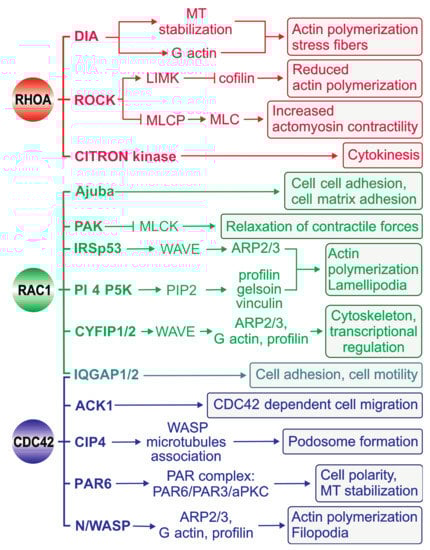 - Heasman, S.J.; Ridley, A.J. Mammalian Rho GTPases: New insights into their functions from in vivo studies. Nat. Rev. Mol. Cell Biol. 2008, 9, 690–701. [Google Scholar] [CrossRef]