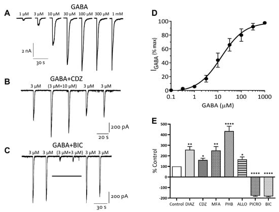 - Sigel, E.; Baur, R.; Trube, G.; Möhler, H.; Malherbe, P. The Effect of Subunit Composition of Rat Brain GABAA Receptors on Channel Function. Neuron 1990, 5, 703–711. [Google Scholar] [CrossRef]