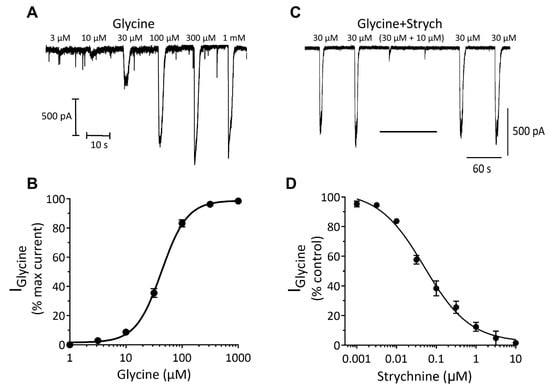 - Burgos, C.F.; Yévenes, G.E.; Aguayo, L.G. Structure and Pharmacologic Modulation of Inhibitory Glycine Receptors. Mol. Pharmacol. 2016, 90, 318–325. [Google Scholar] [CrossRef] [PubMed]