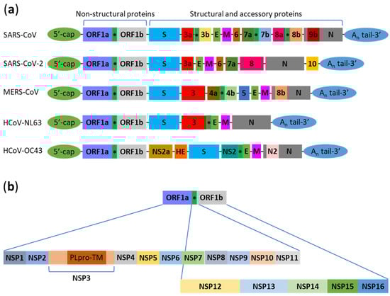 - Prentice, E.; McAuliffe, J.; Lu, X.; Subbarao, K.; Denison, M.R. Identification and characterization of severe acute respiratory syndrome coronavirus replicase proteins. J. Virol. 2004, 78, 9977–9986. [Google Scholar] [CrossRef] [PubMed] [Green Version]