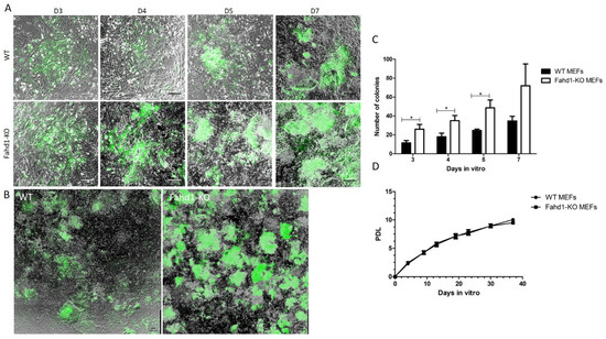 3.1. Reprogramming of WT and Fahd1-KO MEFs