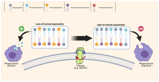 Cell membrane phospholipid composition. In physiological conditions, the cell membrane is characterized by an asymmetric distribution of phospholipids, but this feature is lost during normal cell ageing. For example, in erythrocytes and platelets, phosphatidylserine relocation from the inner leaflet to the outer leaflet of the membrane facilitates the phagocytosis of apoptotic cells and older cells. Normally, the membrane lipid distribution profile is regulated by specific proteins, such as flipases and flopases, and cancer cells might overexpress these proteins to support their high proliferation rate and to avoid phagocytosis. This mechanism might also be necessary for the biogenesis of extracellular vesicles to avoid their unspecific uptake. Nevertheless, in cancer cells, loss of the lipid distribution asymmetry might help to interact with other cells or might facilitate platelet activation on their surface.