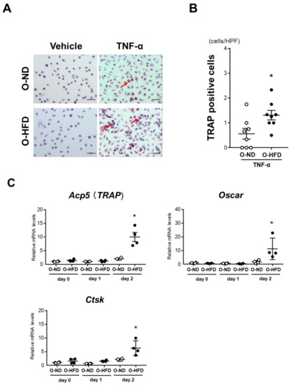 3.3. TRAP-Positive Macrophage Accumulation Is Enhanced in O-HFD