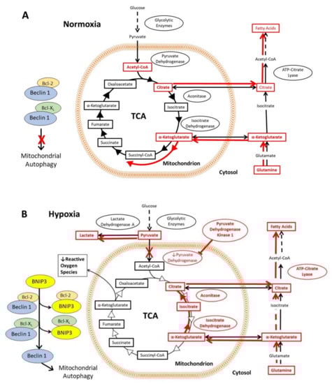 - Bellot, G.; Garcia-Medina, R.; Gounon, P.; Chiche, J.; Roux, D.; Pouysségur, J.; Mazure, N.M. Hypoxia-Induced Autophagy Is Mediated through Hypoxia-Inducible Factor Induction of BNIP3 and BNIP3L via Their BH3 Domains. Mol. Cell. Biol. 2009, 29, 2570–2581. [Google Scholar] [CrossRef] [PubMed]